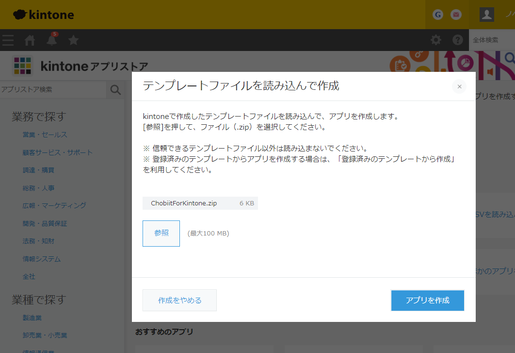 Chobiit for kintone🏃♀️導入に関して利用開始方法このページの見出し利用開始方法トライアル申し込みがまだの方トライアルのお申し込みはこちらから https://novelworks.jp/chobiit/trial_contact (1)プラグインファイルとアプリテンプレートの設定