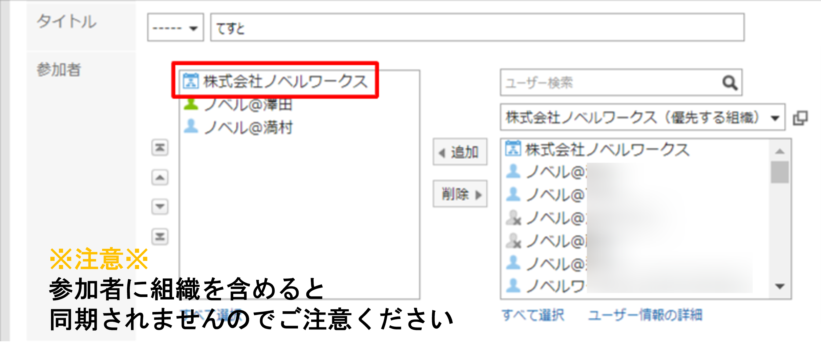 ※Garoonから予定の登録時参加者に組織を含めると同期されません。